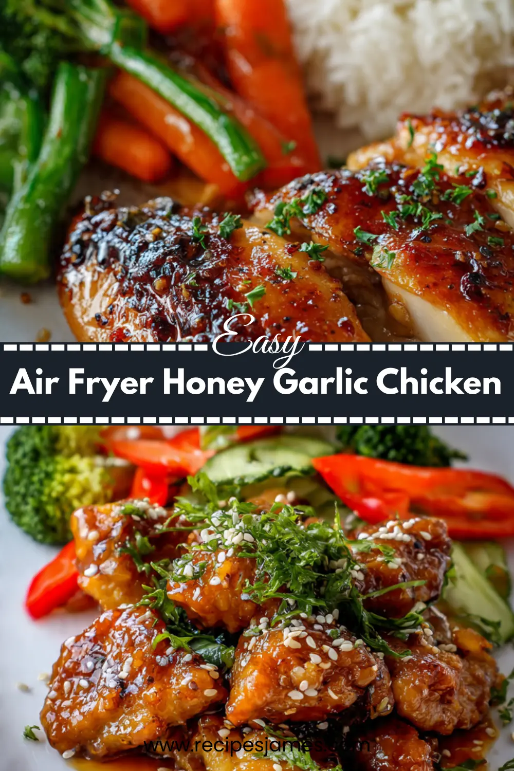 This air fryer honey garlic chicken is sweet, sticky, and packed with flavor no deep frying required. Juicy chicken bites coated in a glossy honey garlic sauce make the perfect weeknight dinner or meal-prep favorite. Save this air fryer honey garlic chicken recipe for an easy, better-than-takeout meal.